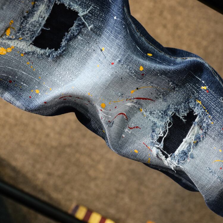 ファッション性と快適さを兼ね備えたドットインク・カジュアルジーパン。